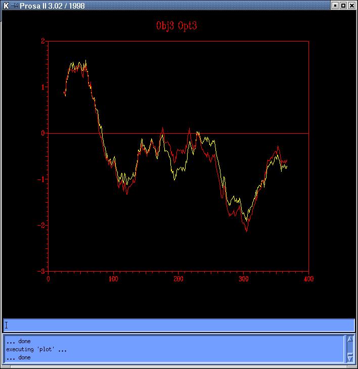 The peaks still appear in the common ProsaII plot (Grumos2, code: Obj2-yellow, Opt2-red; Grumos3, code: Obj3-yellow, Opt3-red); although there is a small descent in the two second peak in the sequence based models optimization, but the first terrible one, is even increased.