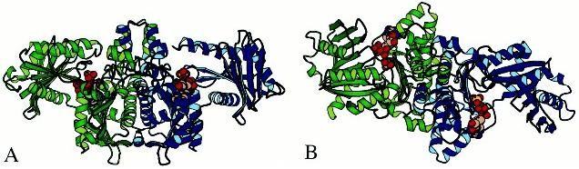 domains (8 stranded beta sheet and 8 helices, for each monomer). The ATP