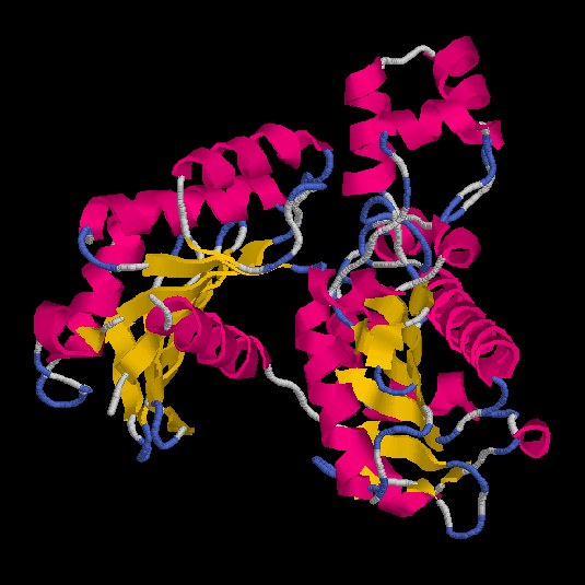 of a central beta sheet surrounded by alpha helices). Next view of the
