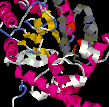 Els canvis es donen en els loops situats en l'extrem C-terminal del barril (alfa/beta)8. En la primera regió s'observa la pèrdua d'un loop entre l'extrem C-terminal de làmina beta 2 i el N-terminal de l'hèlix alfa 4. En la segona zona, el loop beta3-loop-alfa5 està interromput per una petita làmina beta. Com s'ha explicat a la introducció, són els loops situats a la zona C-terminal del barril (alfa/beta)8 els que conformen el centre actiu de l'enzim. Per tant, encara que no participen directament en la reacció enzimàtica, que aquests loops estiguin alterats explicaria un canvi en la disposició del barril que implicaria l'empitjorament observat del patró energètic al prosaII.