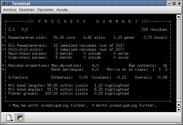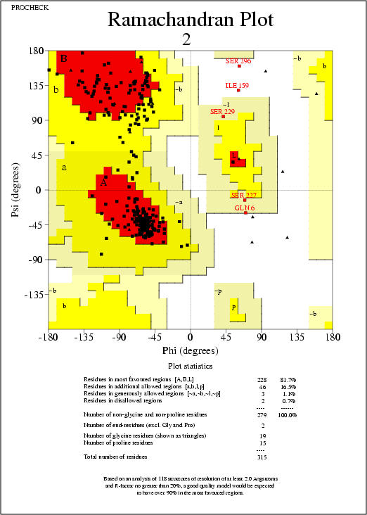 Fig. 4: Resultats del Procheck A: Resum. B: Mapa de Ramachandran