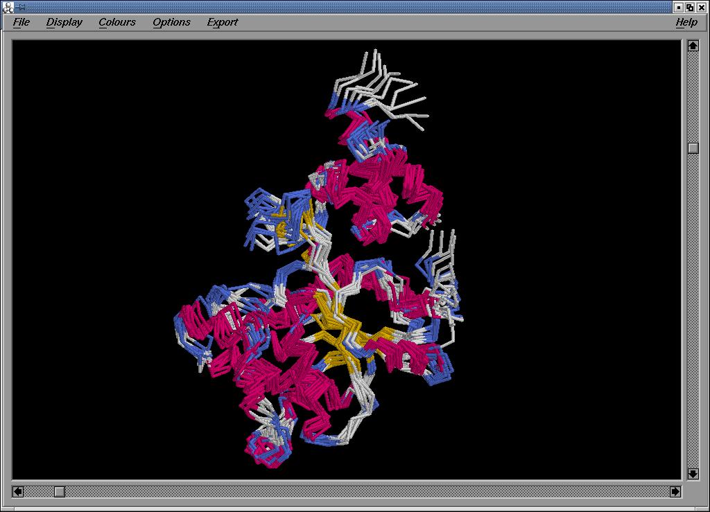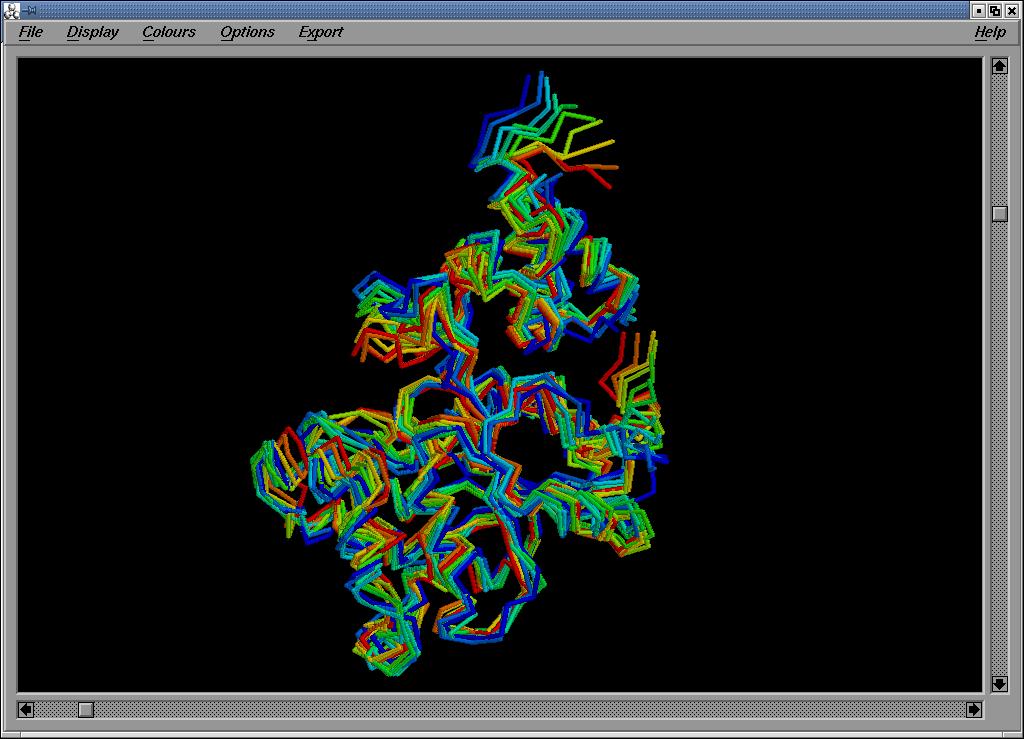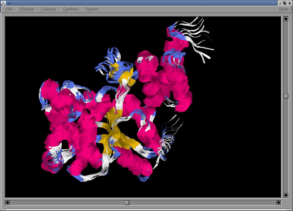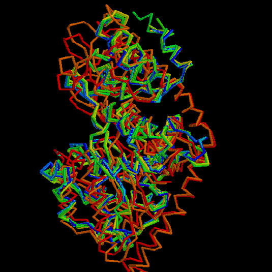 Com s'observa a la figura, la regió corresponent a l'aminoàcid 225 és molt variable pel que fa a la seva flexibilitat. Tal com és d'esperar, aquesta regió correspon a un loop estructural.![]()