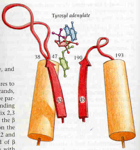 38-47 (loop 2) i 190-193 (loop 5). Al centre actiu s'hi uneix la tirosil-adenilat