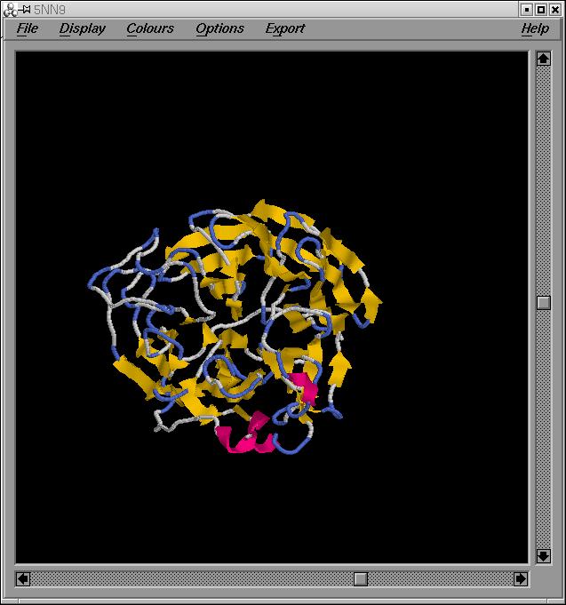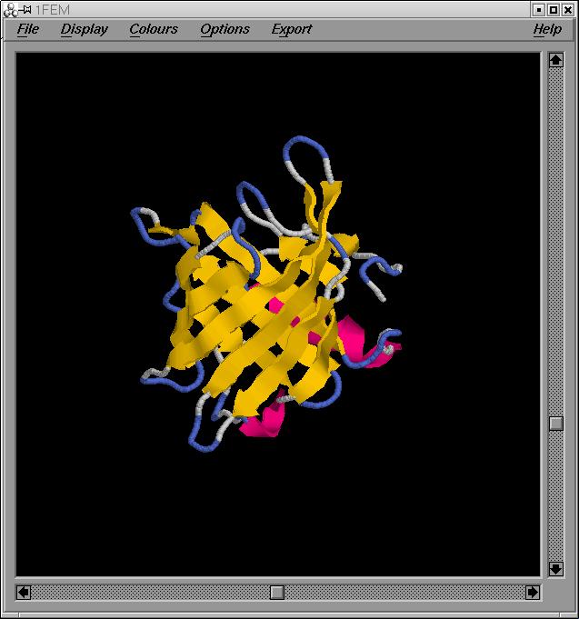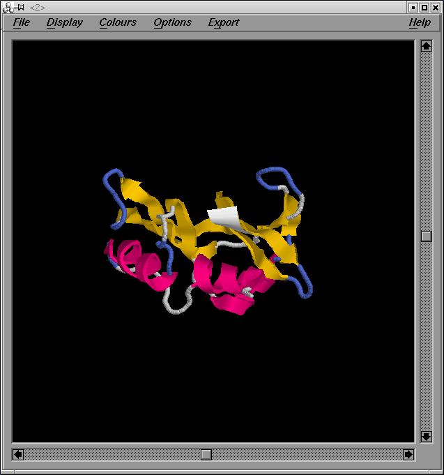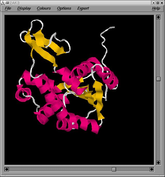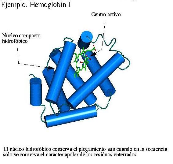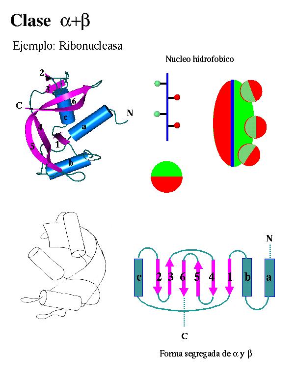 Exemple de la ribonucleasa.3 helix alfa i 6 fulles beta. Es troben separades, a cada extrem de la proteïna i en contacte per les seves zones hidrofòbiques, de forma que la zona hidrofílica queda al exterior de la proteïna i la hidrofobica al interior.