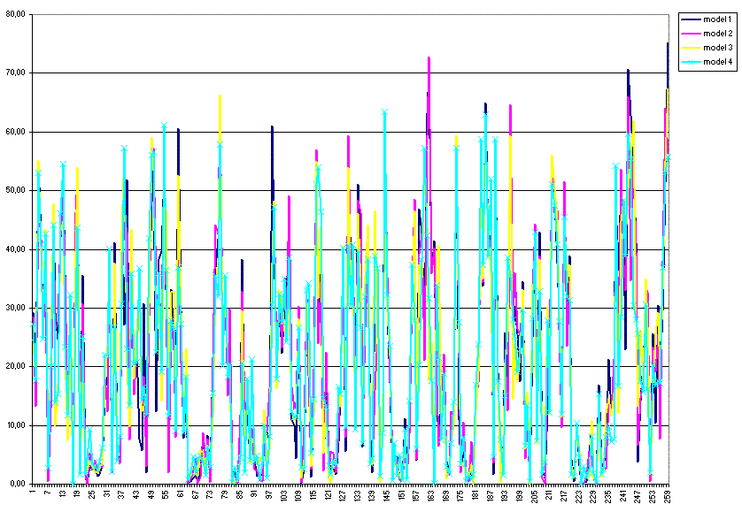 A partir d´aquest arxiu, transfereixo les dades a l´Excell i n´obtinc els següents resultats per a cada un dels models (model1, model2, model3 i model4 respectivament):