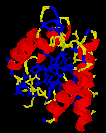 ![]() | A la imatge de l´esquerre, apareix una visió general de la disposició dels residus polars (color groc) i els residus hidrofòbics (color blau). |