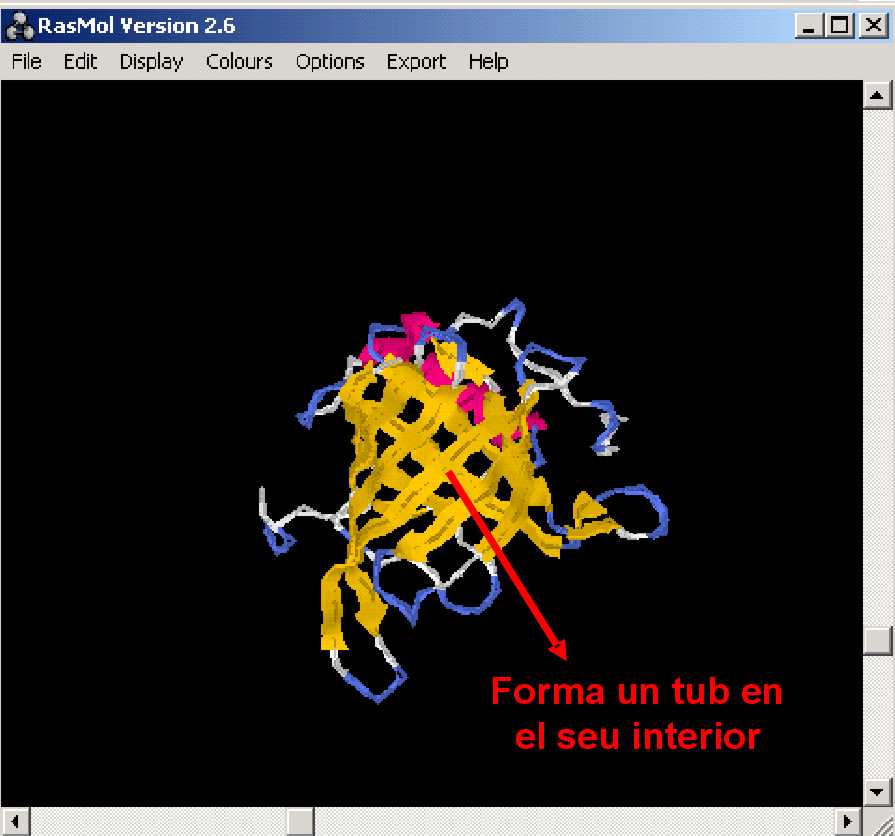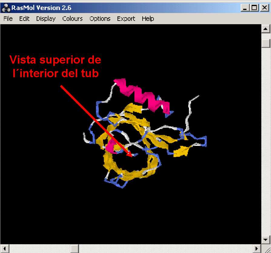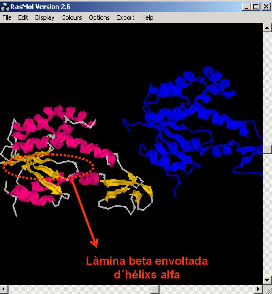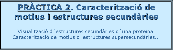 LŽobjectiu dŽaquesta pràctica és, un cop familiaritzats amb el programa Rasmol (veure pràctica 1), es tracta dŽestudiar diferents proteïnes i avaluar-ne la seva estructura. Rasmol, com ja sŽha dit anteriorment, és un programa dissenyat per a visualitzar estructures en format .pdb (entre dŽaltres possibles formats) i poder-les modificar per tal de destacar-ne els detalls més rellevants: estructura, cadenes, tipus de plegament... DŽigual forma que en lŽanterior pràctica (veure pràctica 1), podem importar les imatges que nŽobtinguem amb un editor dŽimatge (GIMP...)