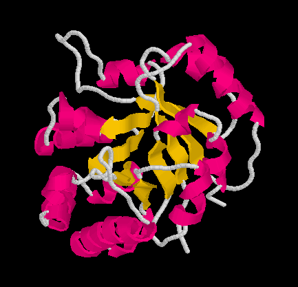 Figura 3: en color daurat s'observa un dels motius β-α-β que conforma l'estructura.