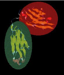 | Figura 3: la proteïna presenta dos dominis estructurals, un indicat en vermell i l'altre en verd.