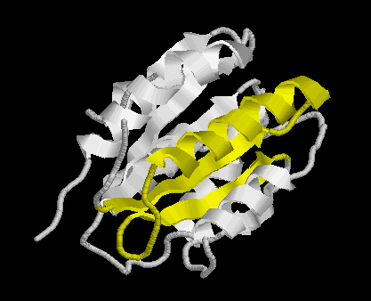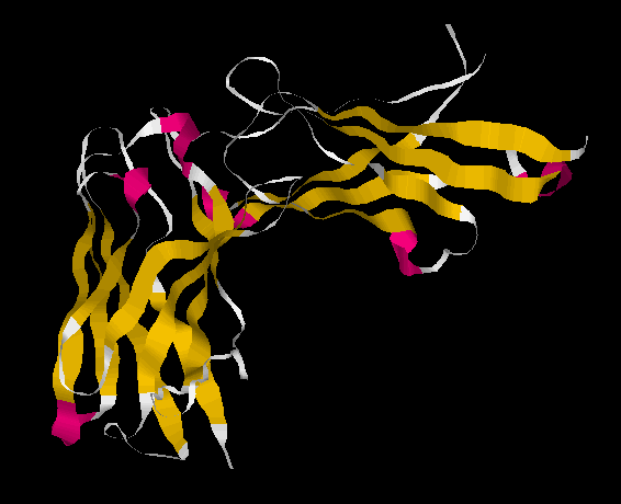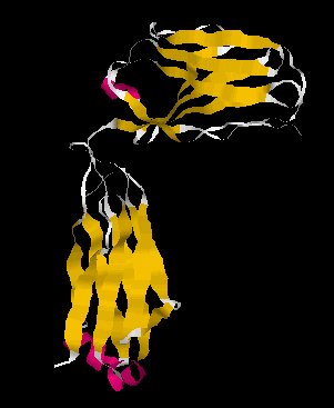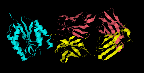 Aquesta proteïna es troba formada per tres cadenes A, L i H (figura 1). D'aquestes, H i L presenten el mateix tipus de plegament, mentre que A és diferent (figura 2). La cadena A presenta un plegament de tipus α/β, ja que es pot veure que s'alternen les hèlix α i les làmines β (figura 3), i concretament de tipus open-sheet, ja que es pot veure que està compost per un full central β envoltat per hèlix α (figura 4). les cadenes L i H presenten dos dominis, ambdós amb un plegament de tipus tot β ja que està compost exclusivament per fulls β (figura 5), de tipus Greek-key β-sandwich, ja que el domini està format per motius greek-key, que formen dues fulles β enfrontades una a l'altra (figura 5)(per més detalls, veure plegament 7).